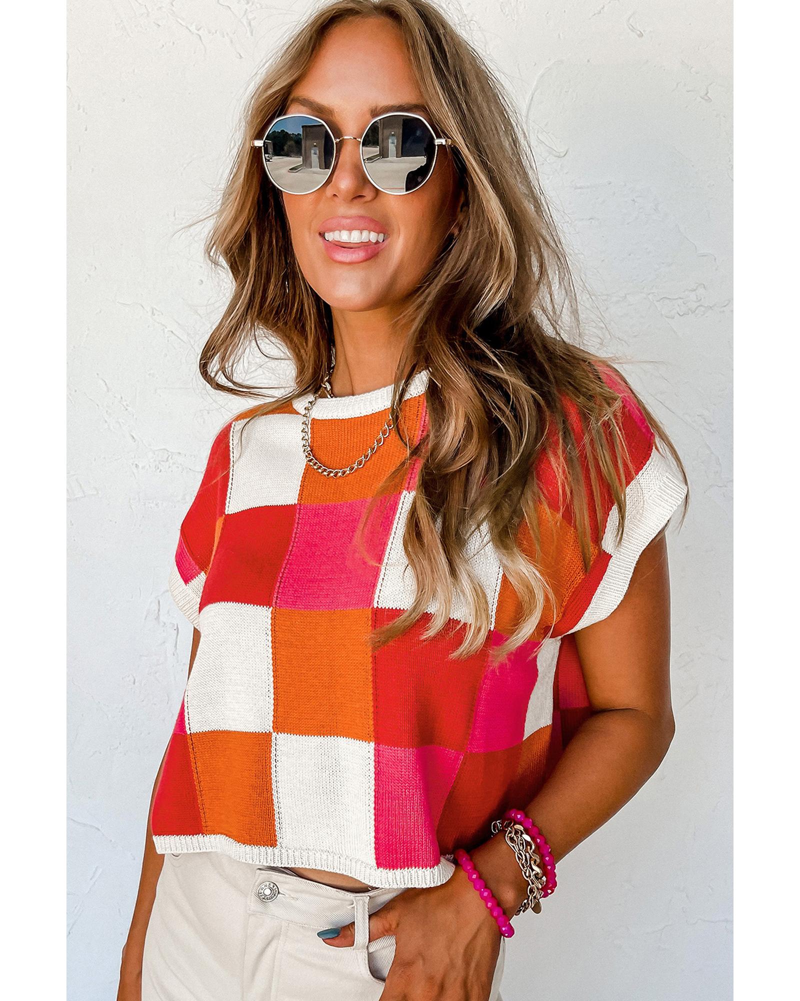 Fiery Red Color Block Cap Sleeve Sweater – S