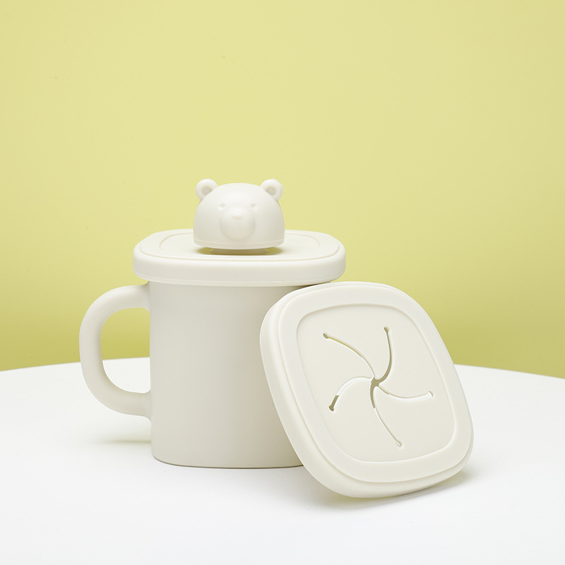 Light Yellow Silicone Baby Training Cup with Dual Handles, Duck-Bill & Snack Cup Lids, Spill-Proof & Drop-Proof