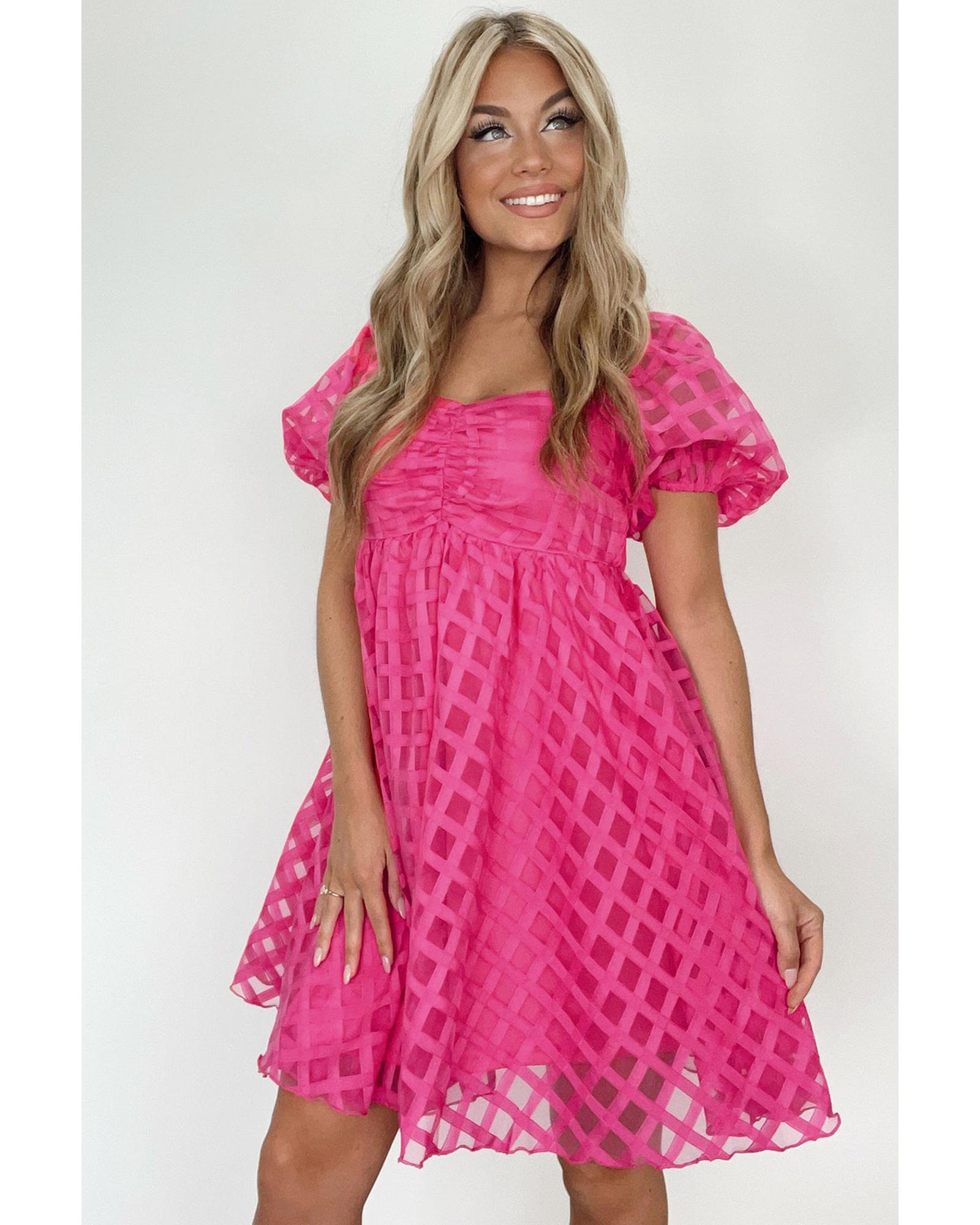 Strawberry Pink Checkered Puff Sleeve Babydoll Dress – XL