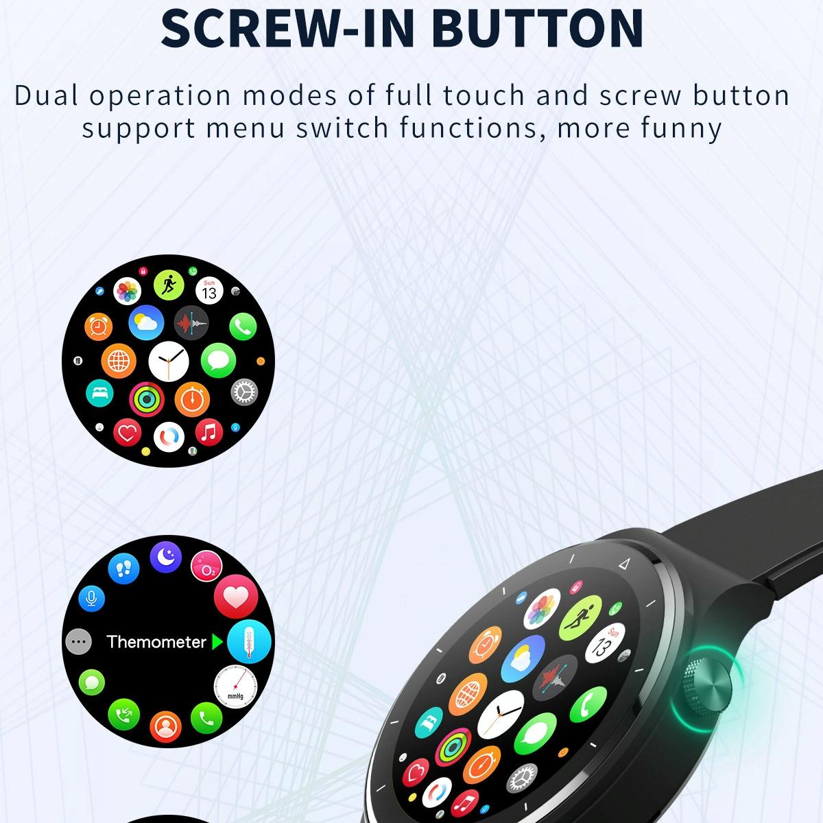 1.28 Inch Touch Colour Screen Smart Watch Black – Leather Black