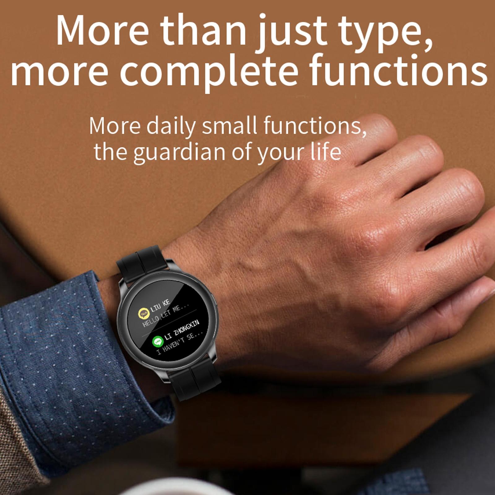 • Functions include call, SMS, WeChat, and QQ reminder push, exercise tracking, sleep monitoring, sedentary reminder, calorie calculation, stopwatch, heart rate and blood pressure monitoring, vibration, exercise mode, remote camera, music control, smart alarm, weather forecast, multi-dial switching, and more
