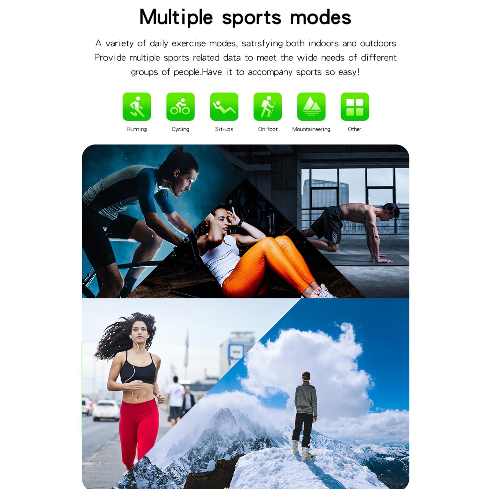 • Functions: heart rate and blood pressure monitoring, exercise tracking, sleep recording, message reminders, remote camera control