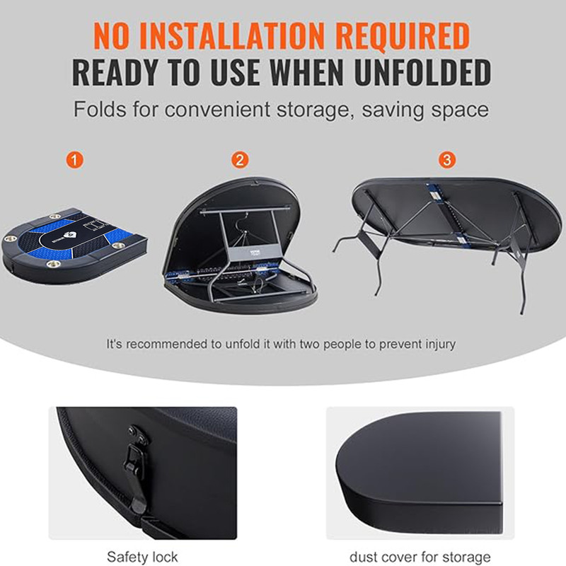 Tool-Free Assembly: Designed with a foldable feature and a secure lock, this blackjack texas holdem poker table allows you to quickly set it up or fold it for storage. The safety lock firmly secures the table, preventing it from collapsing or coming loose when in a folded state. When not in use, you can easily store it in a corner without taking up too much space. It also comes with a dust cover to keep the table clean.