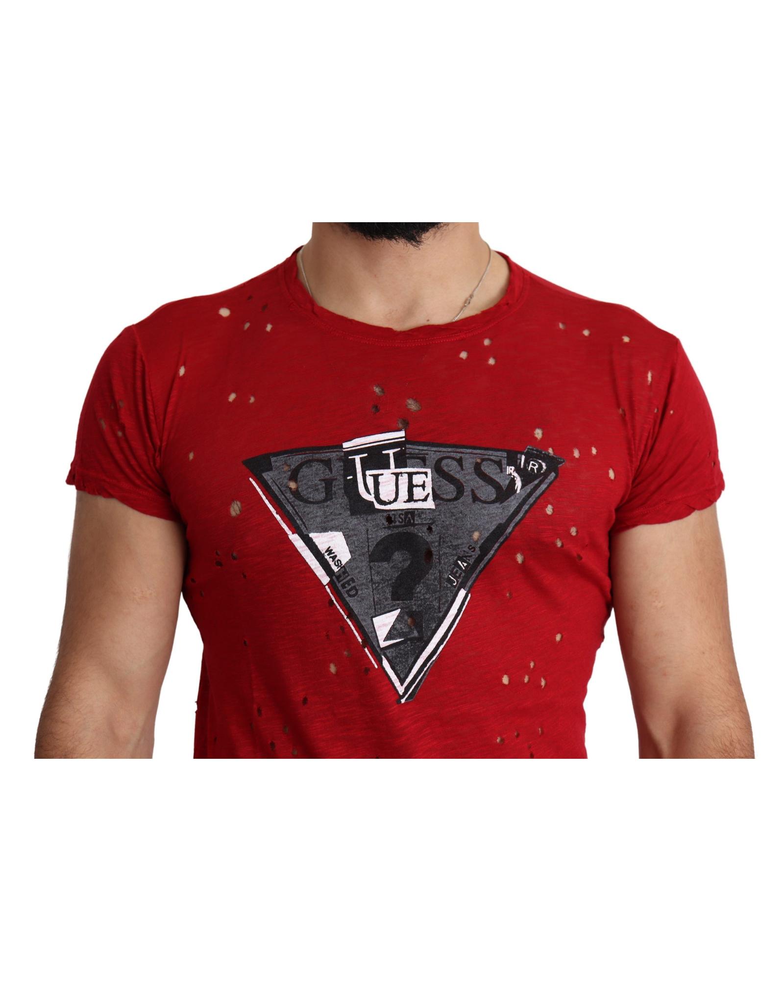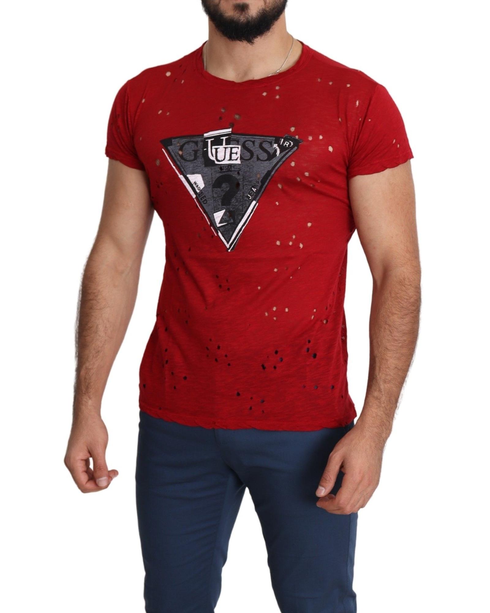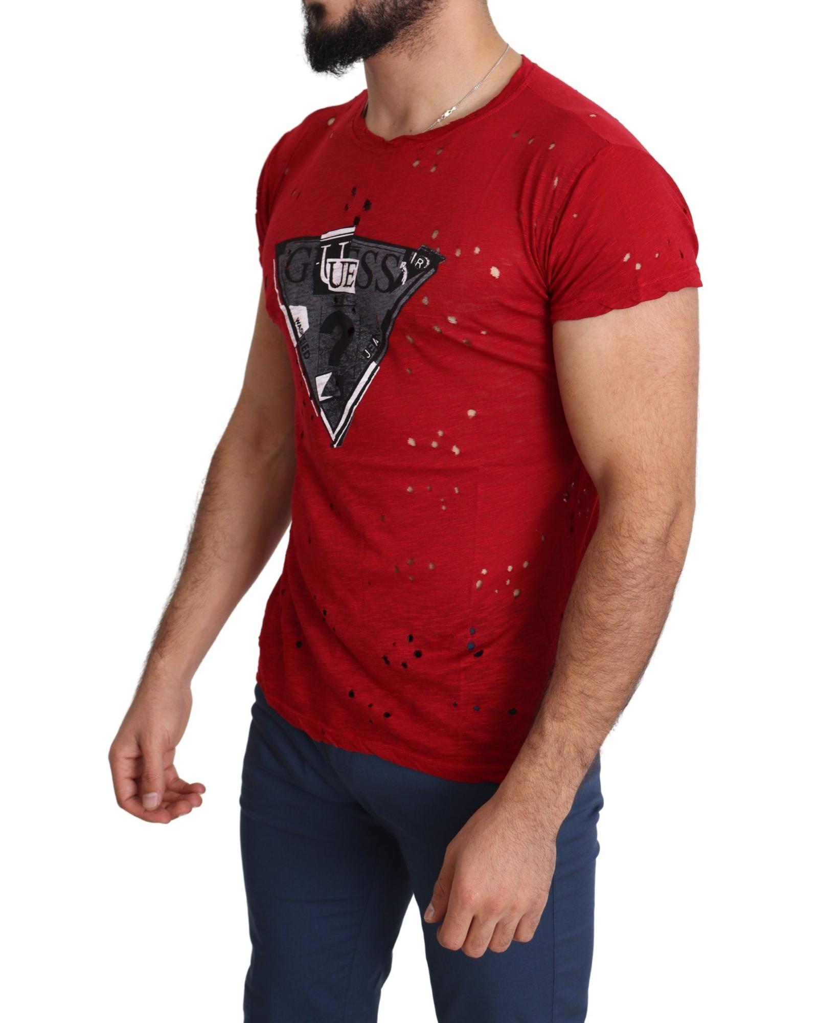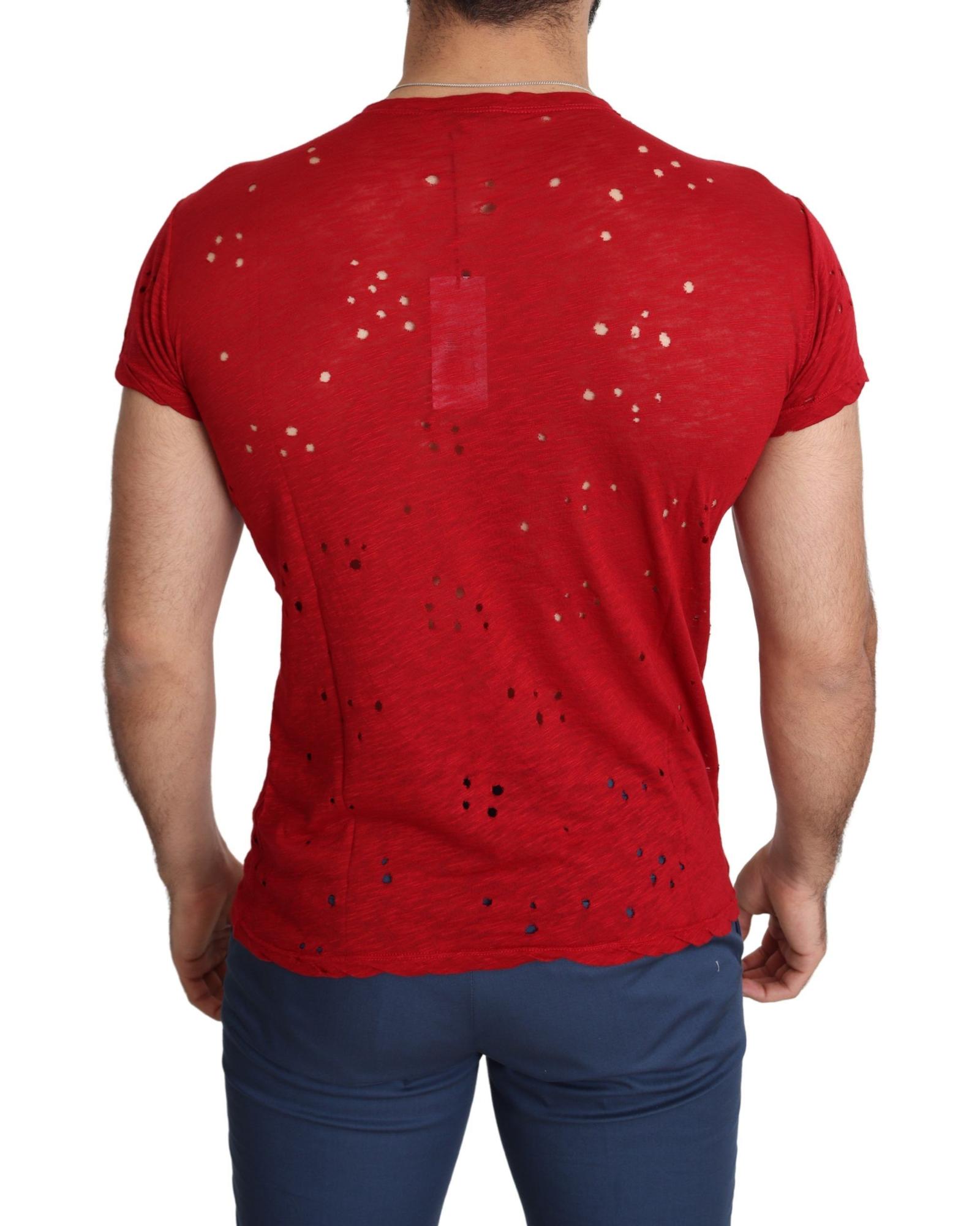 100% Authentic Red Cotton Stretch T-Shirt with Round Neck and Short Sleeves L Men