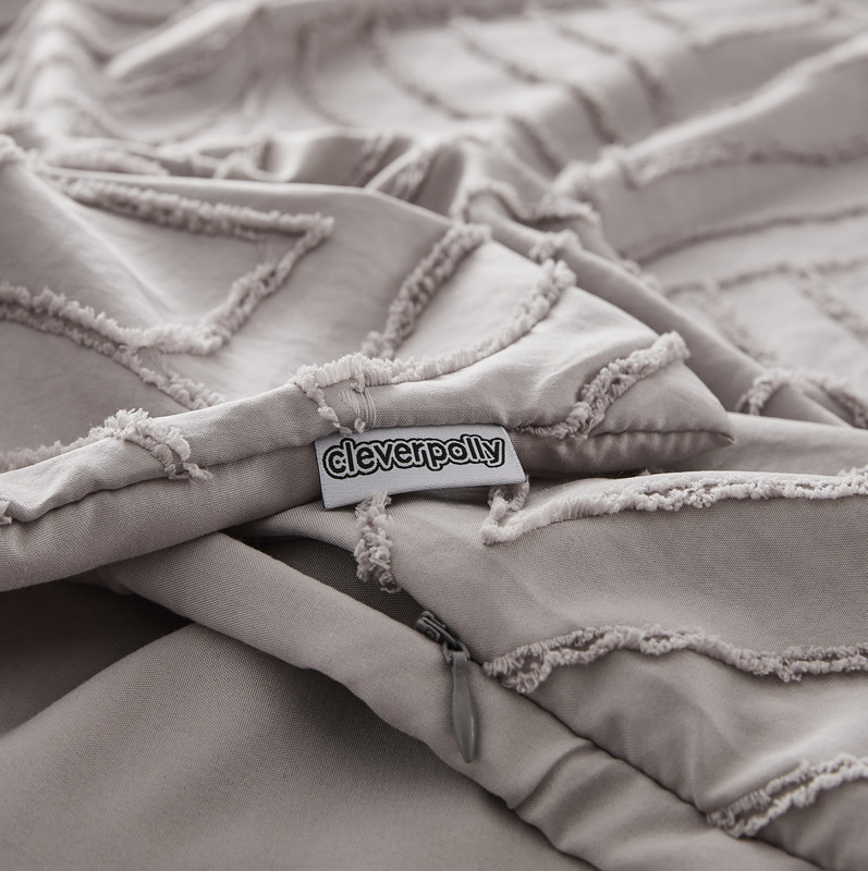 100% Premium Tufted Microfibre Quilt Cover Set - Ultra-Soft, Durable Embroidery Bedding Comforter Set - Machine Washable & Zipper Closure - Smoke - Single