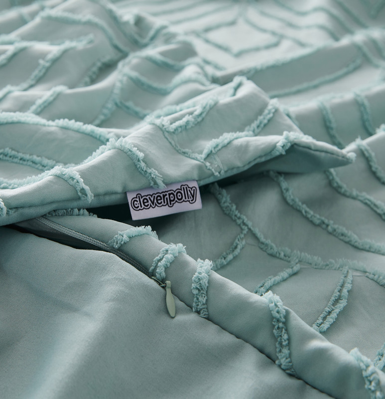 100% Premium Tufted Microfibre Quilt Cover Set - Ultra-Soft, Durable Embroidery Bedding Comforter Set - Machine Washable & Zipper Closure - Sage Green - Queen