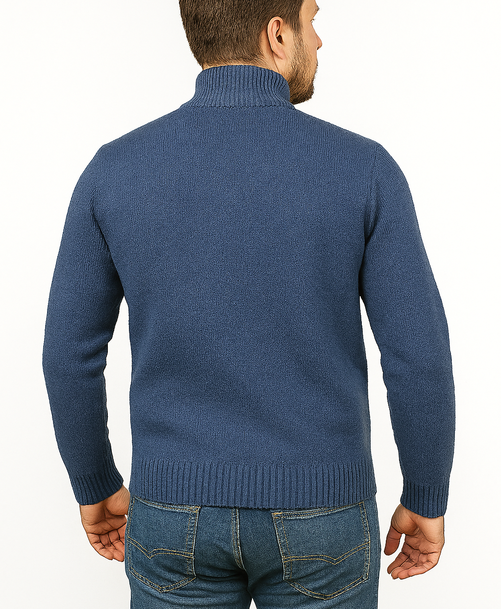 100% SHETLAND RAGG WOOL Half Zip Up Knit JUMPER Pullover Mens Sweater Knitted in Sky – M