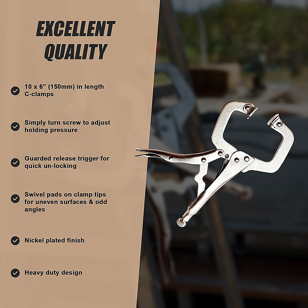 10pc Heavy Duty Steel C-Clamps 6″ Mig Welding Locking Plier Vice Grip