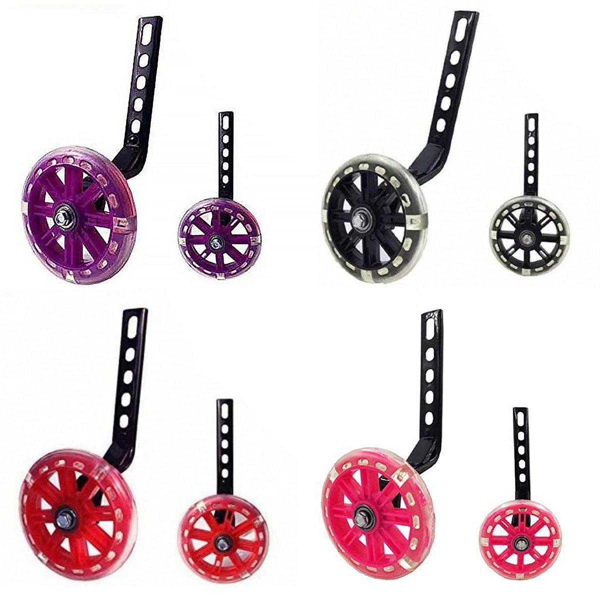 These adjustable 12–20 inch bike training wheels are ideal for beginner riders building confidence in their cycling skills. Made from durable PVC and featuring a silent, smooth performance, these stabilizer wheels ensure a quiet and balanced ride. The flashing light effect adds a fun and safe element, enhancing visibility during low-light conditions. With adjustable steel brackets, they can fit a variety of bike sizes ranging from 12 to 20 inches, making them an essential accessory for beginner cyclists during outdoor adventures.