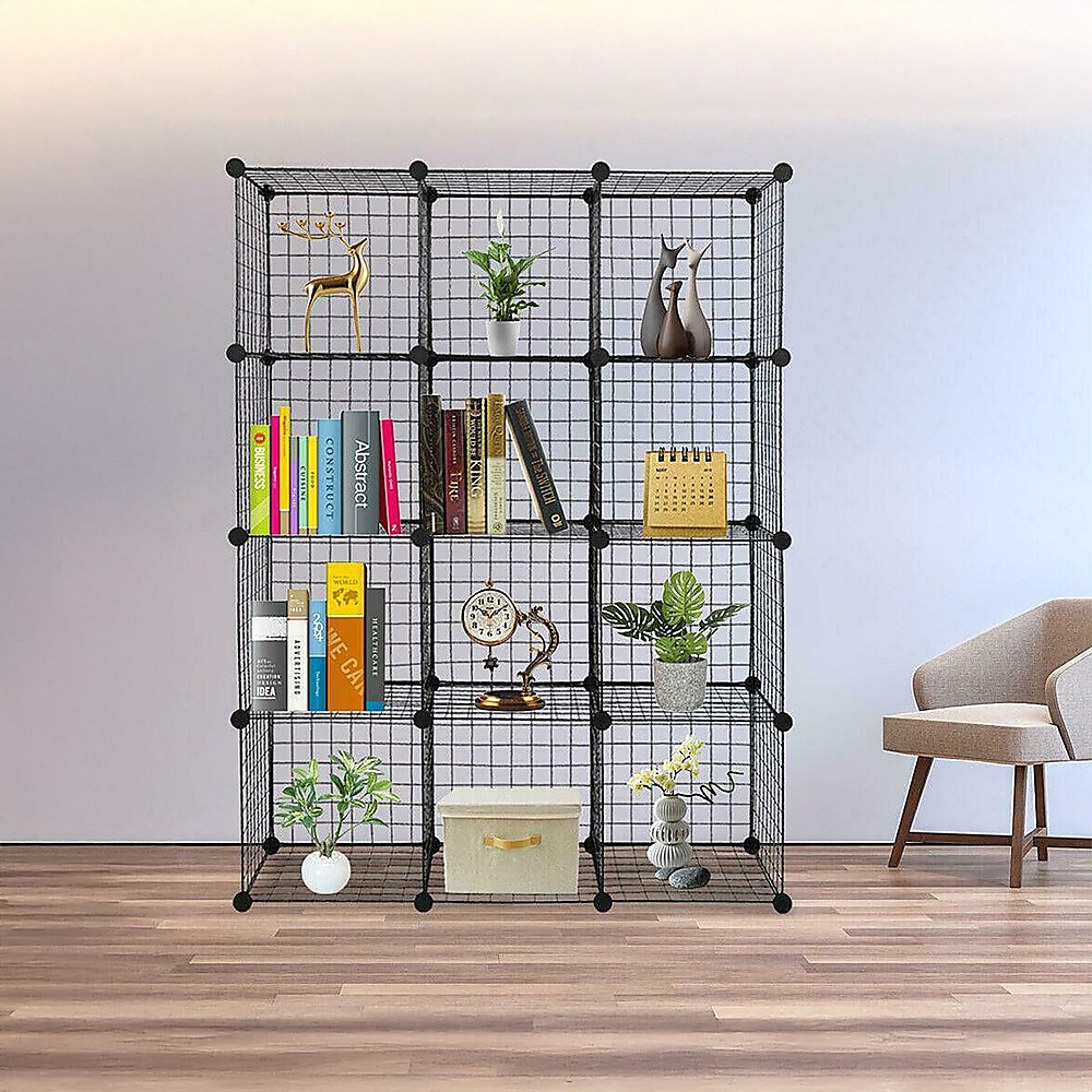 12 Cube Wire Grid Organiser Bookcase Storage Cabinet Wardrobe Closet Black