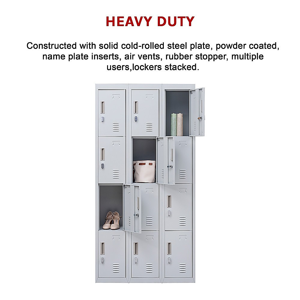 12-Door Locker for Office Gym Shed School Home Storage – Padlock-operated