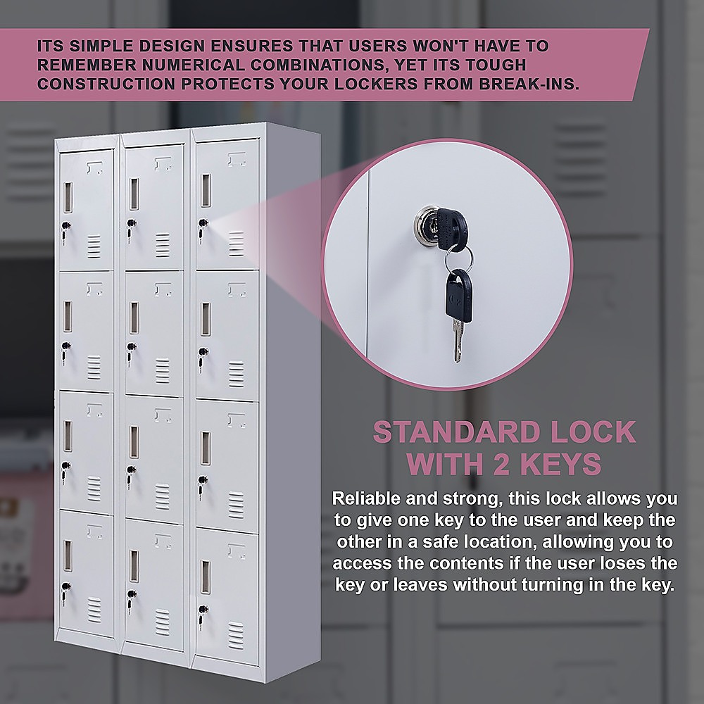12-Door Locker for Office Gym Shed School Home Storage – Standard Lock with Keys