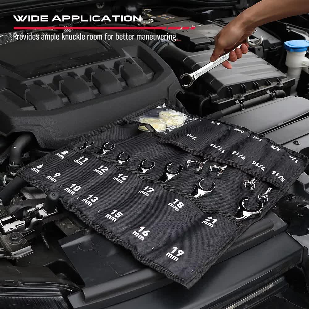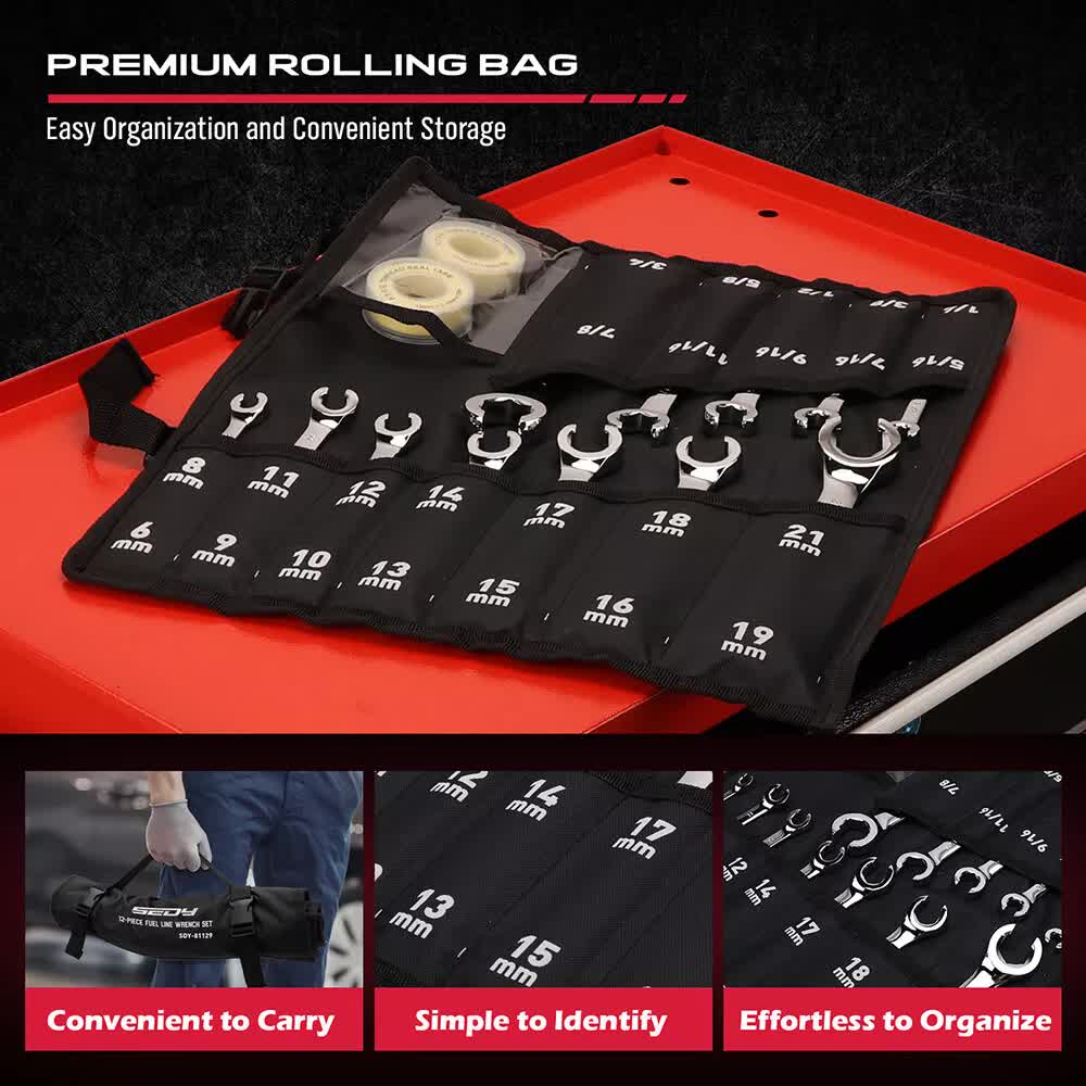 EASY ORGANIZATION All tools come in a convenient organizer pouch, keeping everything neatly stored and easily accessible for your next project. Whether you’re a DIY enthusiast or a professional, this set covers all your flare nut wrench needs.