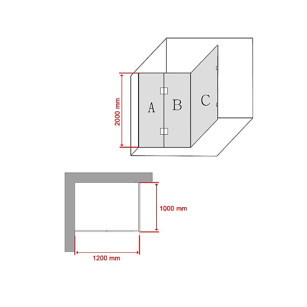1200 x 1000mm Frameless 10mm Glass Shower Screen By Della Francesca