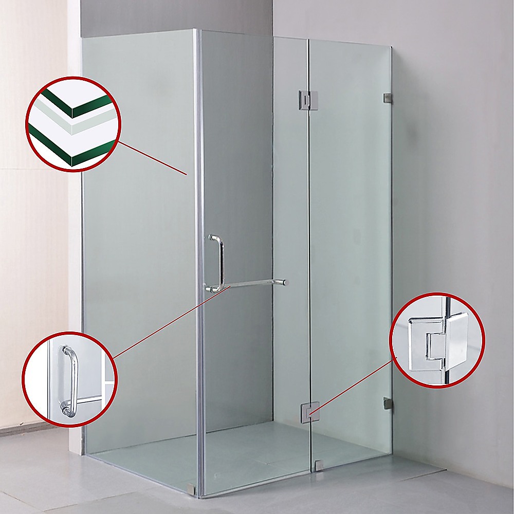 - Heavy duty stainless steel hinges brackets – Glass panels are secured by stainless steel brackets which are screwed into the walls and floor of your shower and wont rust or chip like the inferior brass version