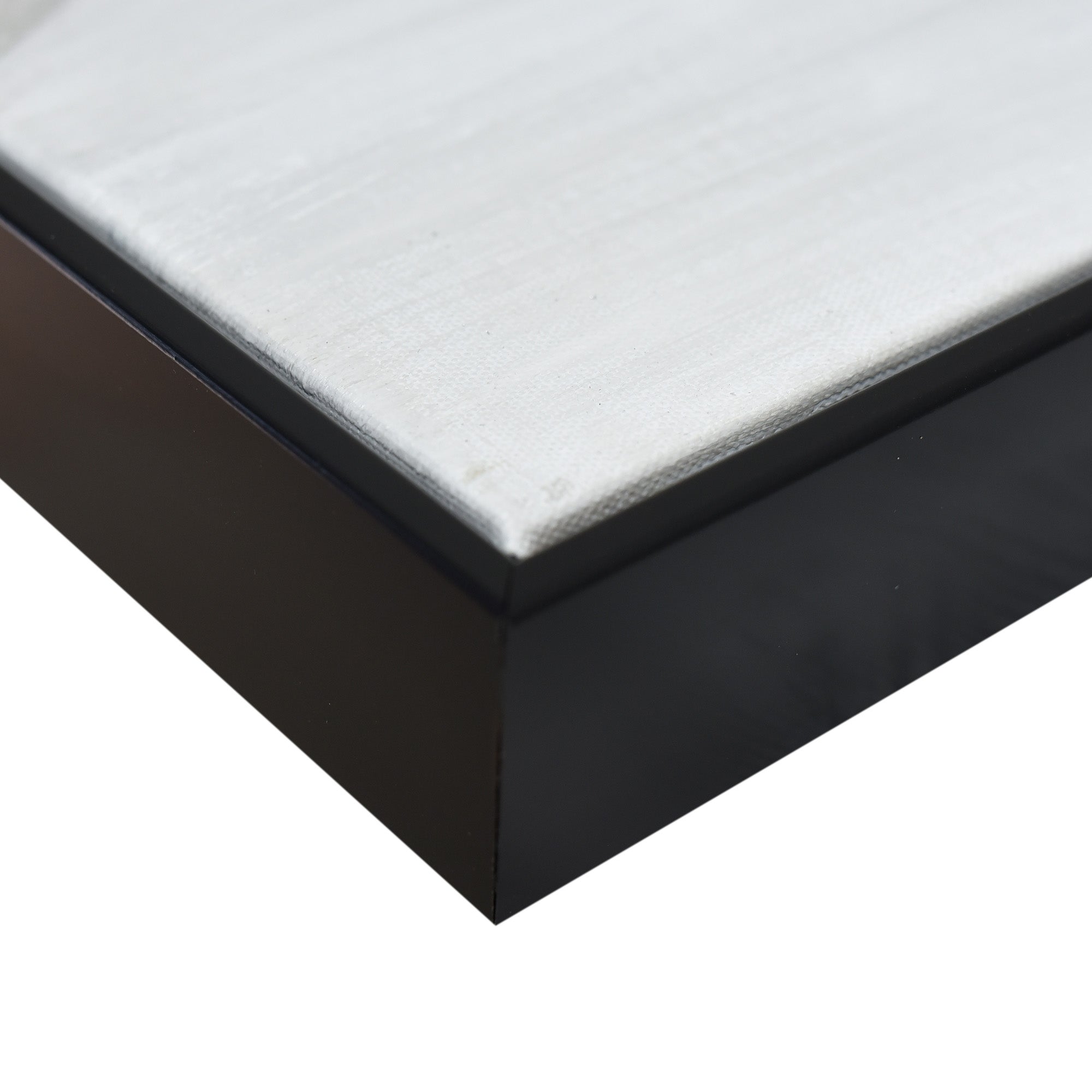 Stretched and gallery wrapped around a wooden stretcher and finished with a floating frame. There is a gap between the frame and print, which creates the floating effect and literally makes the canvas print stand out even more.