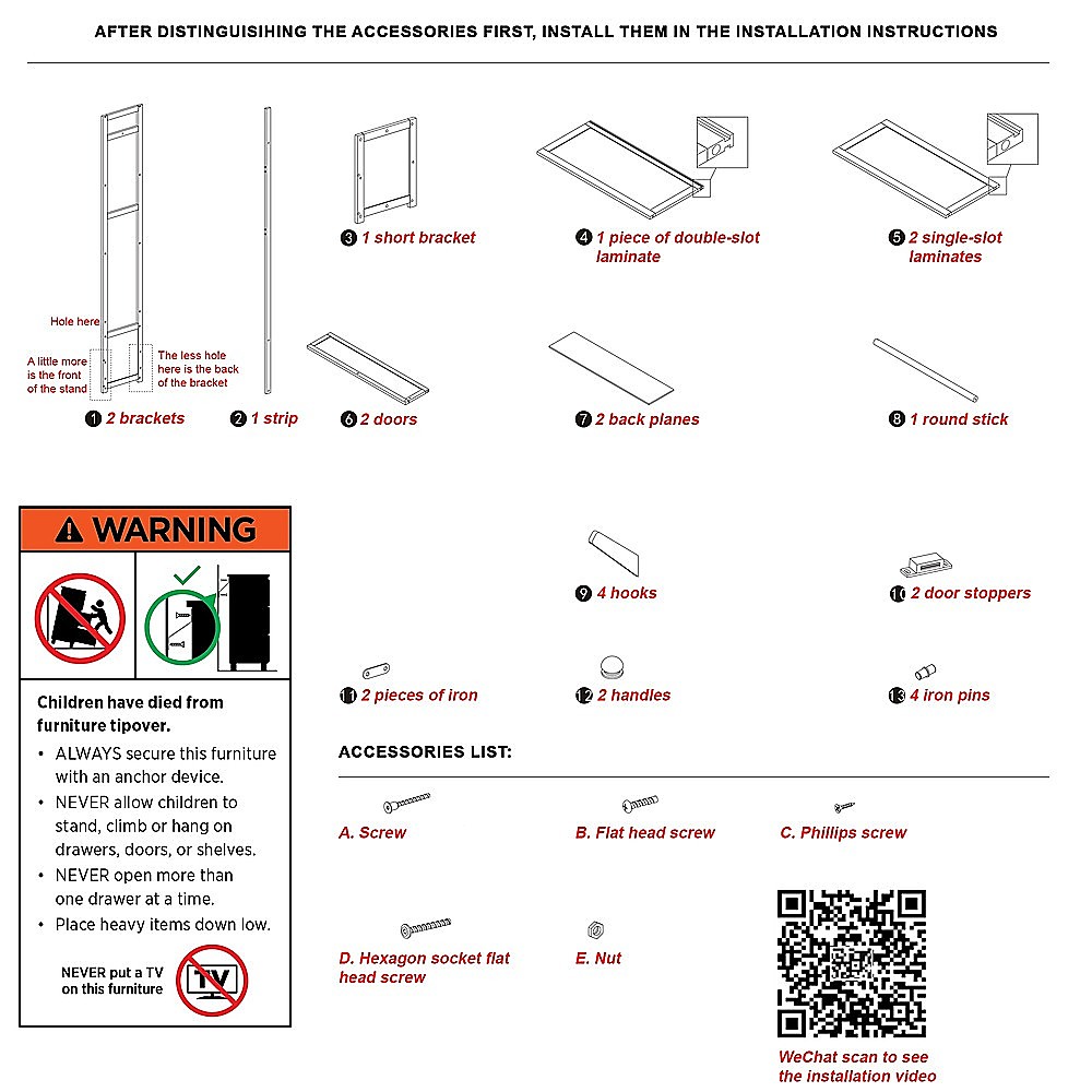 - NEVER allow children to stand, climb, or hang on drawers, doors, or shelves.