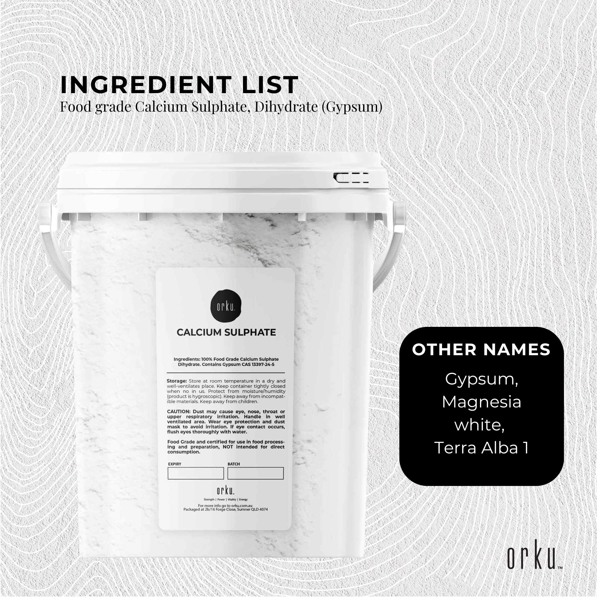 1Kg Calcium Sulphate Gypsum Powder Bucket- Food Grade Hydrous Sulfate