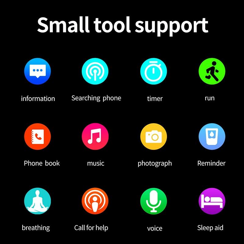• Multiple Functions Including Time Synchronization, Alarm, Weather Push, Sleep Tracking, Timer, Find My Phone, Call and Text Message Reminders, Heart Rate Monitoring, Blood Oxygen Detection, Remote Music Control, and More