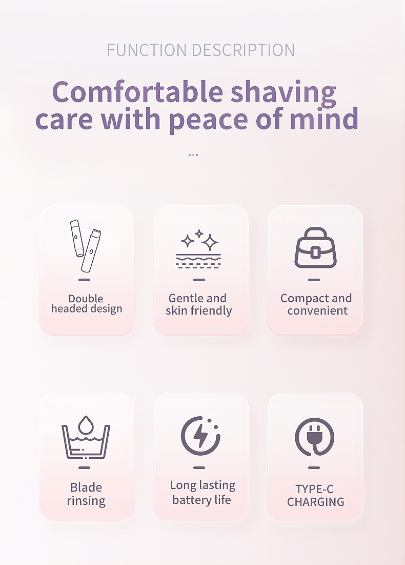 Achieve smooth, hair-free skin effortlessly with our 2-in-1 Electric Lady Shaver and Trimmer. This versatile device features a double-headed design: one end for repairing and trimming longer hairs, and the other for a clean shave of shorter hairs, solving all your body hair problems. Its gentle, non-irritating, and non-allergenic design makes it suitable for full body use, including sensitive areas like armpits, private care areas, and legs. Equipped with a powerful motor and intelligent IC control, it offers quick, time-saving, and worry-free hair removal. The compact and stylish design, along with USB charging (USB cable included), makes it perfect for use at home or on the go, providing an instantly clean and refreshing feeling.