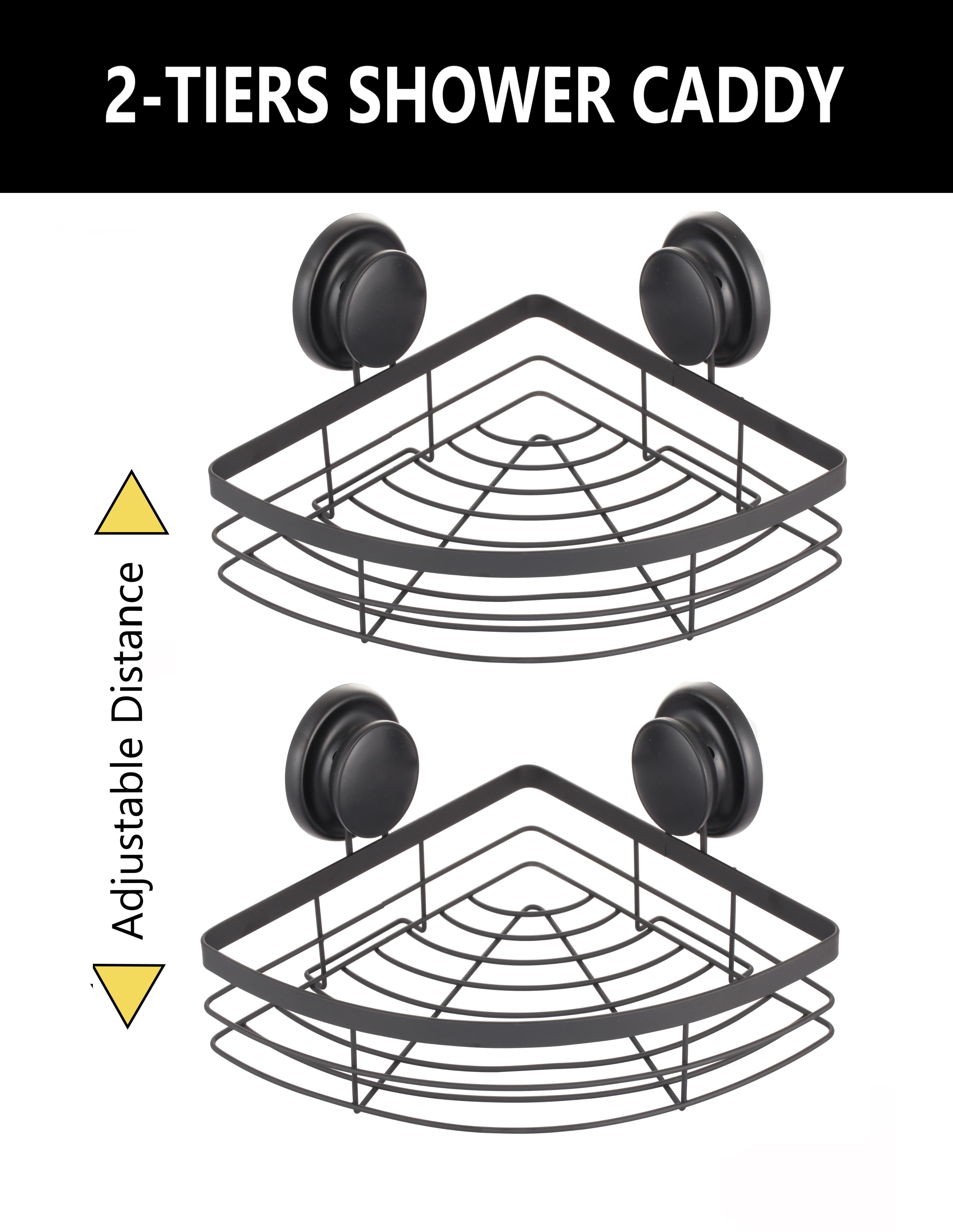 • 2 TIERS CORNER SHOWER CADDY SHELVES: A perfect shower caddy companion to double up the storage of shower products. You can shower with all things at your eye level, and say goodbye to the shower where you usually has everything at the bottom of the floor.