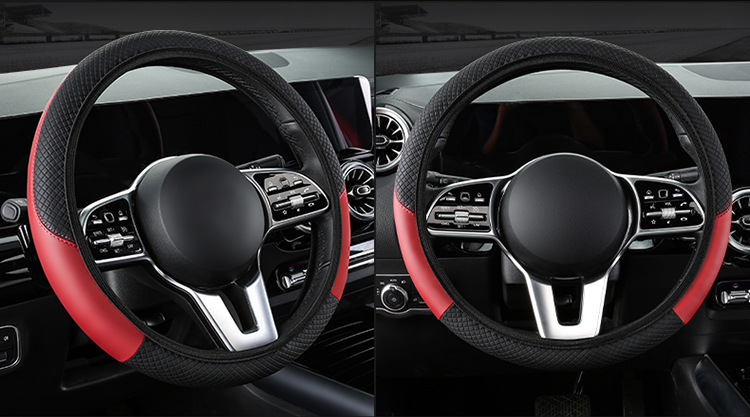 Transform your driving experience with this dynamic and stylish steering wheel cover. Combining a modern carbon fiber texture with smooth PU leather accents, this cover not only protects your original steering wheel from wear and tear but also provides an enhanced, comfortable, and non-slip grip for better control on the road.