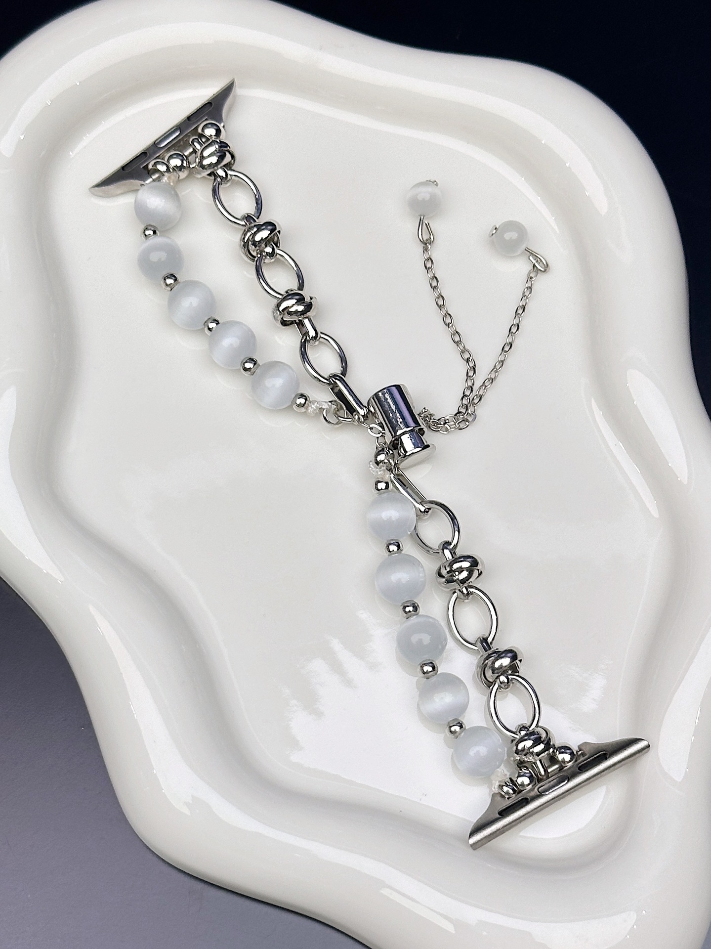 Elevate your Apple Watch with this stunningly beautiful and chic beaded bracelet band. Designed for the modern woman, this strap blends the sophistication of jewelry with smartwatch functionality, featuring lustrous Cat’s Eye style beads and elegant metal accents.