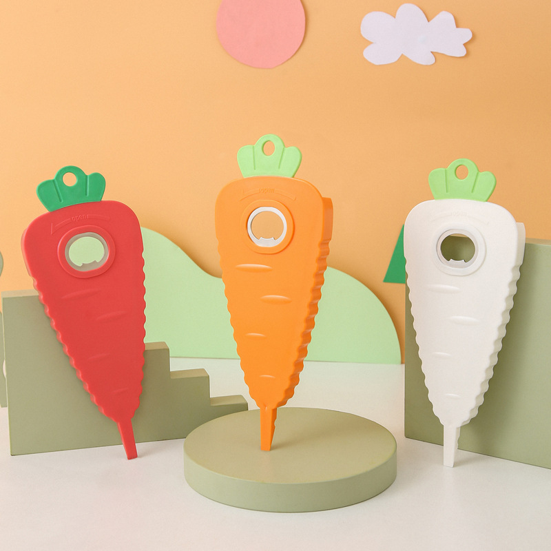 This adorable carrot-shaped bottle opener is not only a fun kitchen tool but also a versatile solution for opening jars, bottles, and cans. Its ergonomic design, made from durable ABS material, ensures easy handling and efficiency in the kitchen, bar, or restaurant. The opener includes a non-slip strip, magnetic base for easy storage, and a unique appearance that adds a touch of personality to your kitchen tools.