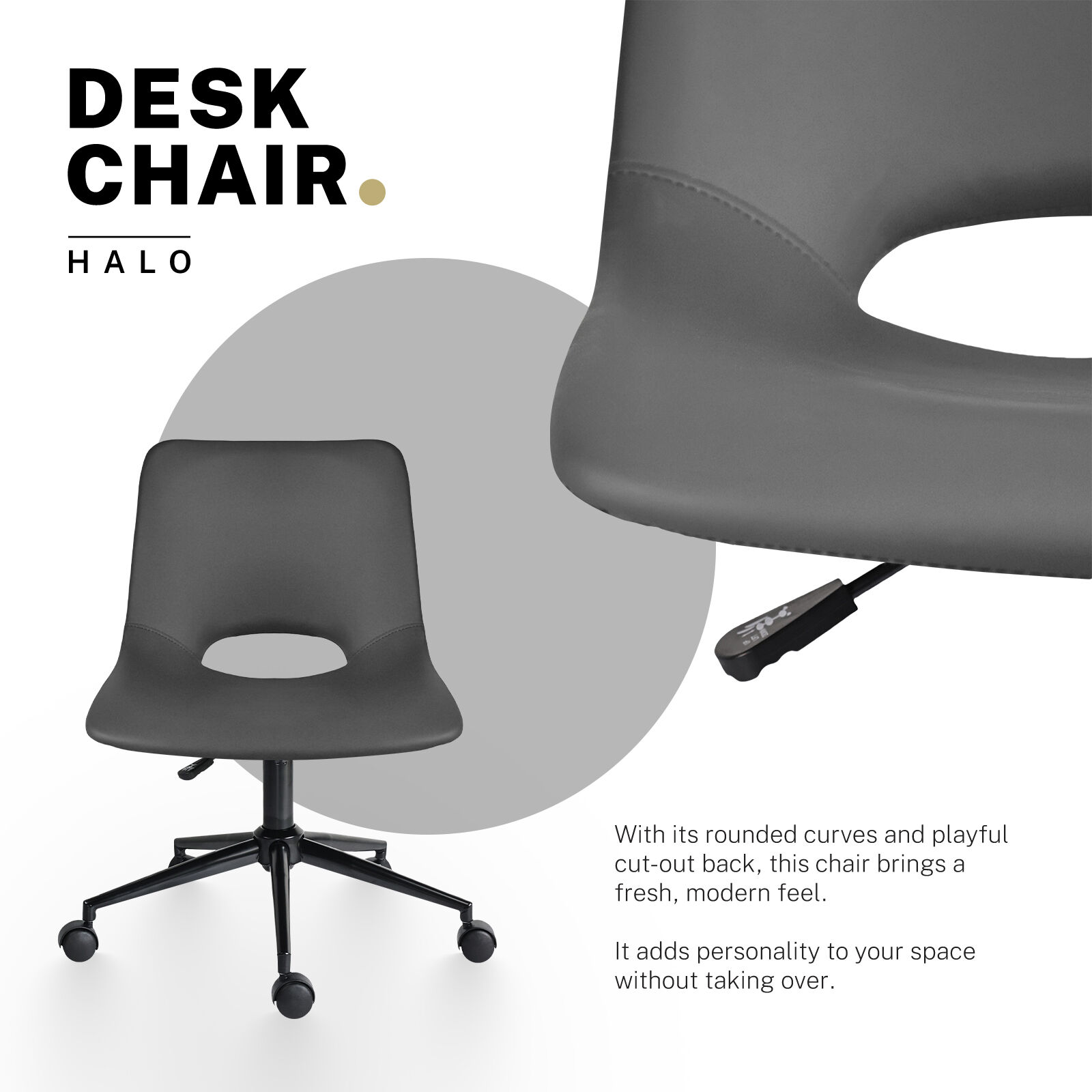 2 Set Office Desk Chair – PU Leather Home Swivel Chair Cut-Out Seat HALO GREY
