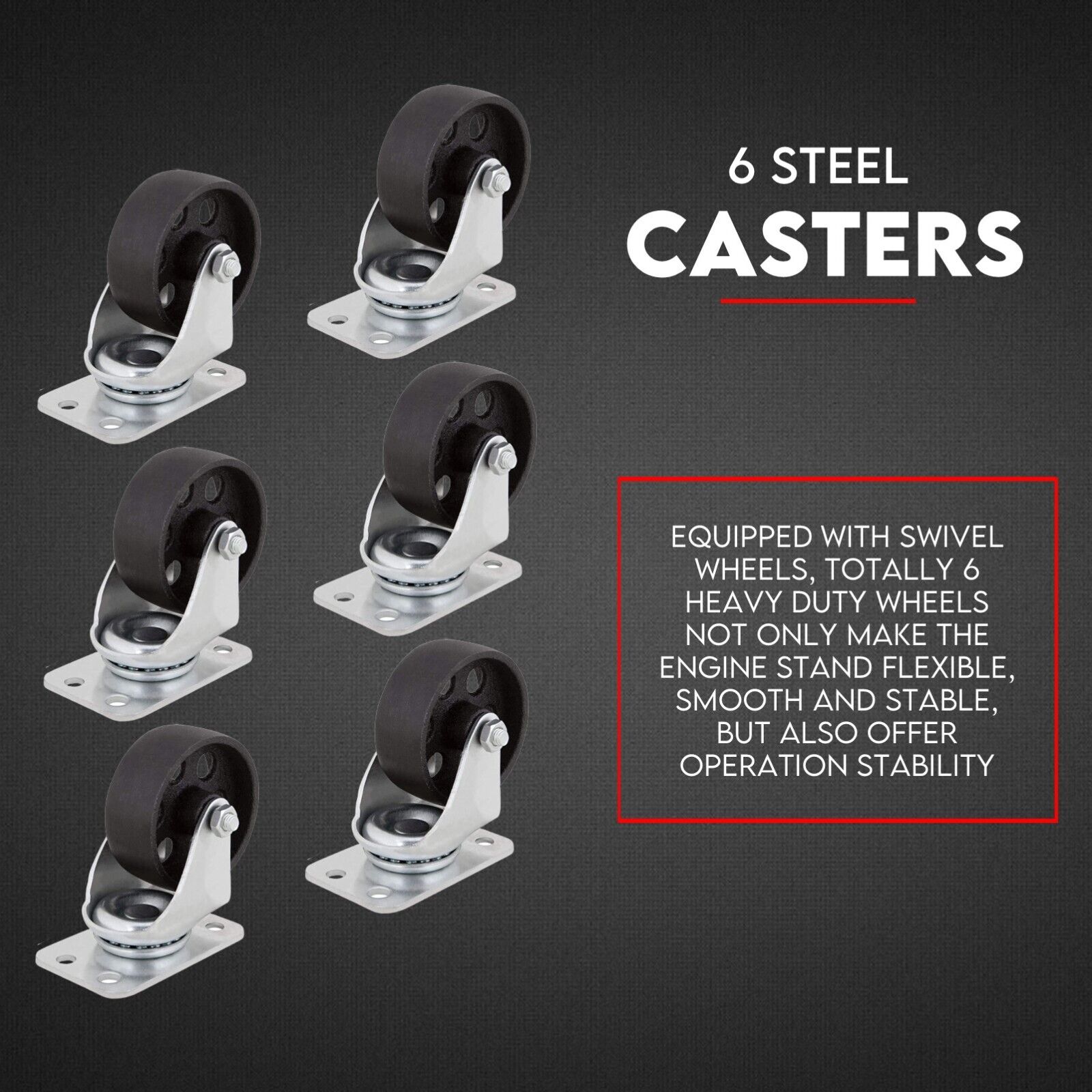 6 – Heavy Duty Cast Iron 360° Swivel Wheels