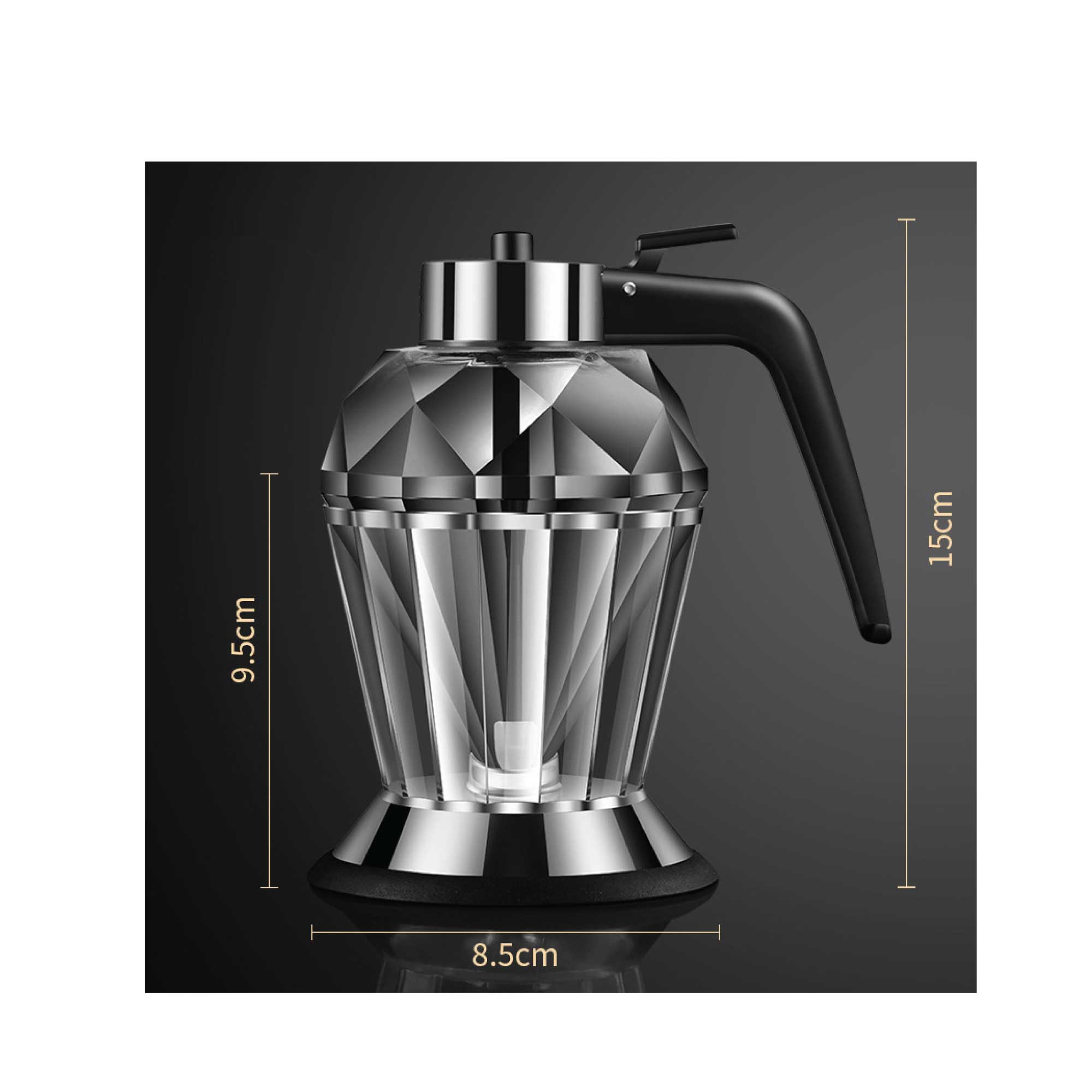 200ml Oil Honey Dispenser – Syrup Sauce Glass Pourer – Diamond Pot and Stand