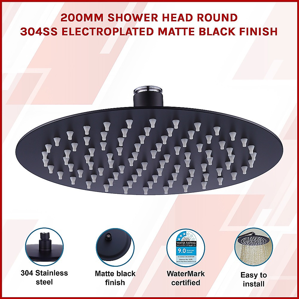200mm Shower Head Round 304SS Electroplated Matte Black Finish