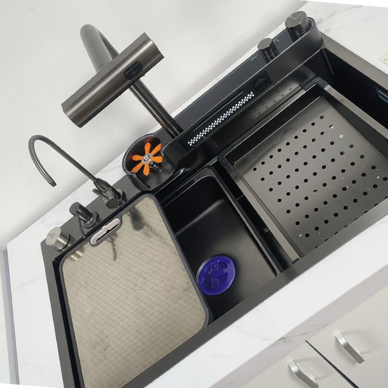 2024 Integrated Waterfall Kitchen Sink Honeycomb Technology Large Digitial Display Stainless Steel Water Filter Cup Washer