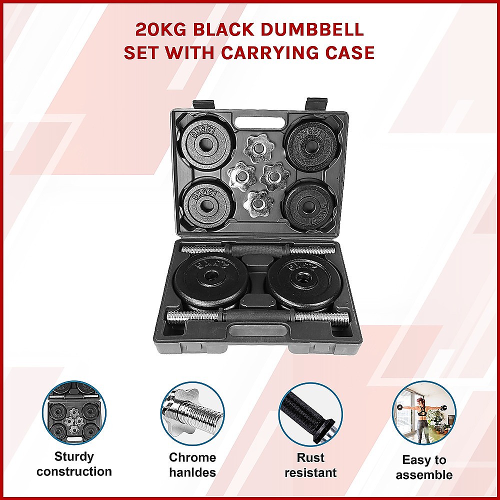 Features of the 20 kgs Black Dumbbell Set with Carrying Case:
