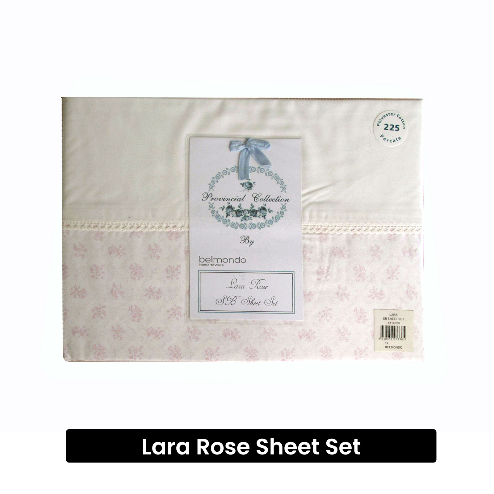 This gorgeous shabby chic 225TC Lara Rose Sheet Set Single by Belmondo features a Rose print design in cream and pink colour tones with delicate lace trim bordered. The fabric is an easy care and durable 225 thread count percale made from quality polyester cotton.