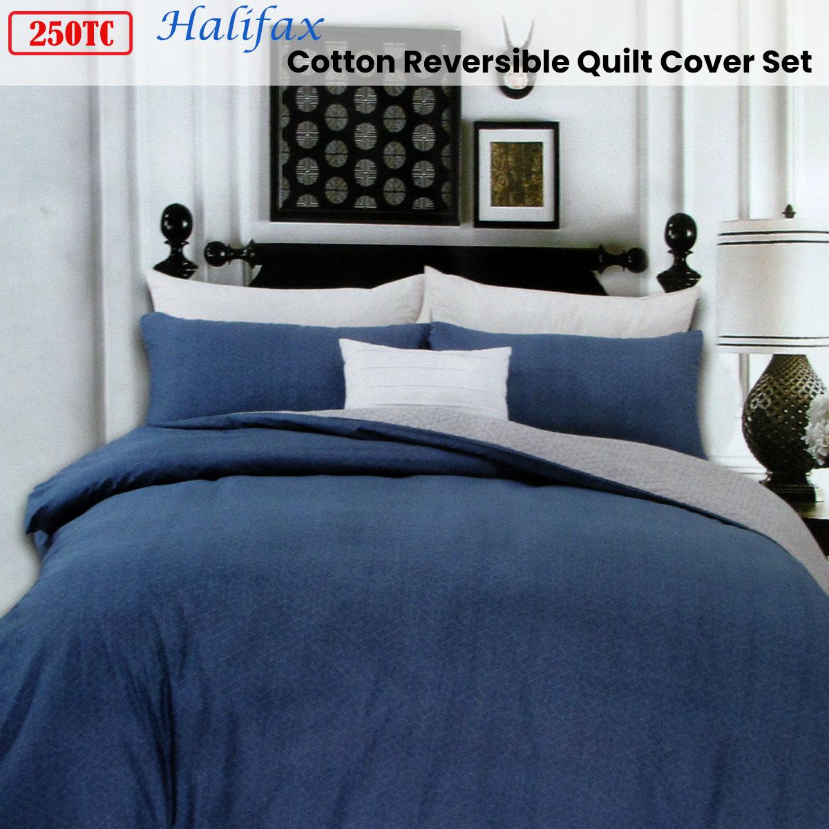 250TC Halifax Cotton Reversible Quilt Cover Set Queen