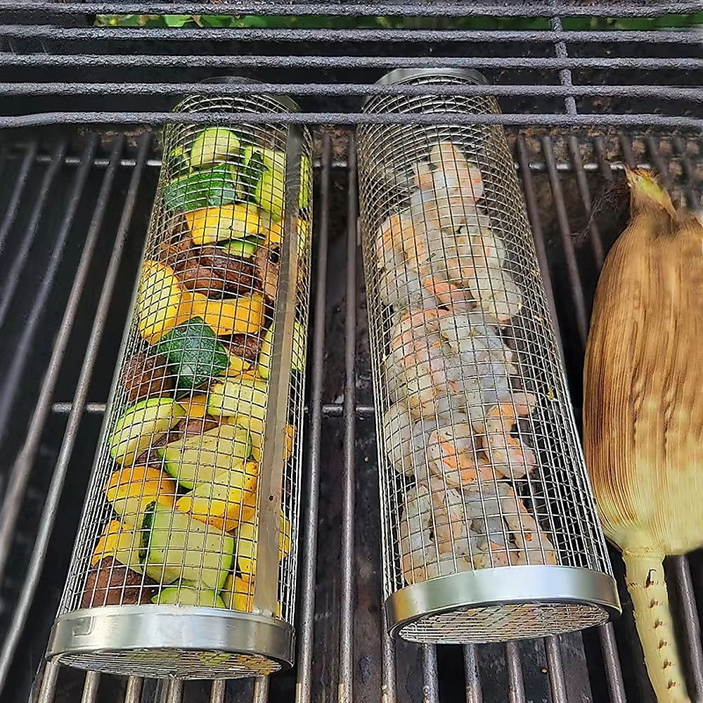 - 2 x Grill Rolling Baskets