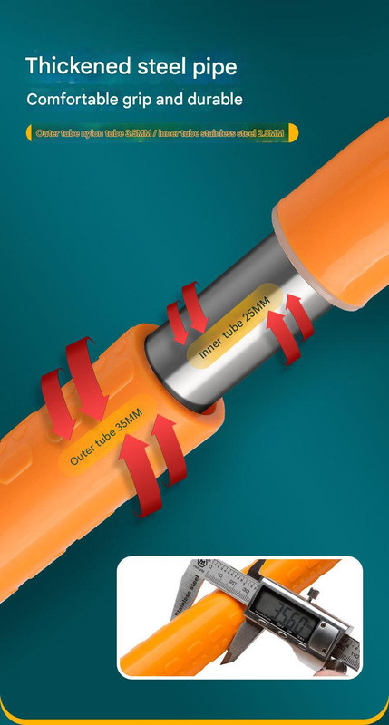 • Heavy-Duty Construction: A robust 2.5mm thick stainless steel inner tube (25mm diameter) is covered by a 3.5mm thick antibacterial nylon outer tube (35mm diameter) for superior strength and durability.