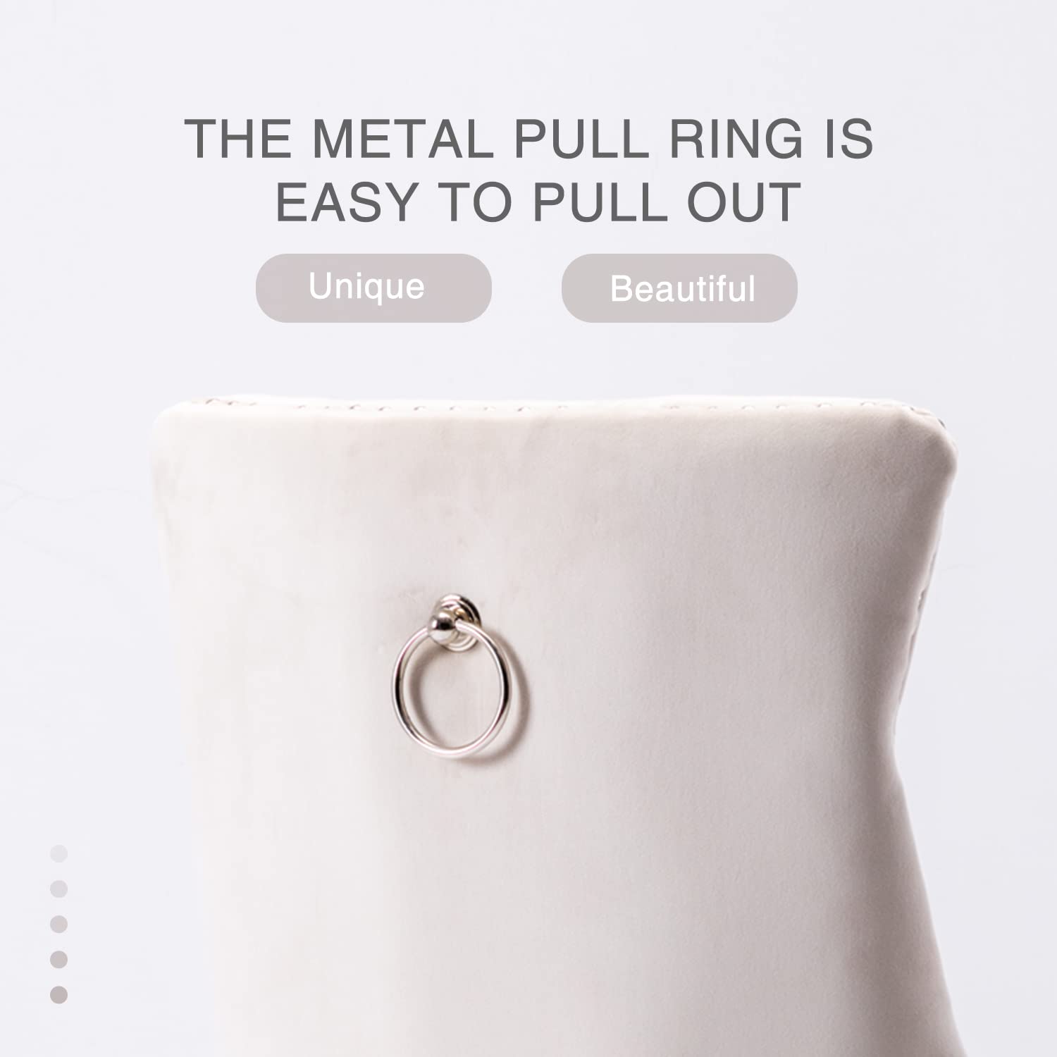 Solid and Durable Construction: The ring behind the back has a decorative effect, also help to pull the chair out. Sold as a set of 2 matching chairs to fully complete your space, Comes in one package. Springs and thick soft sponge padding provide maximum comfort. the solid dining room chairs are steady and strong to bear a great capacity up to 300lbs. Besides, the solid legs under the seat provides you with extra stability. Also, the velvet seat is of high quality, which is corrosion-resistant.