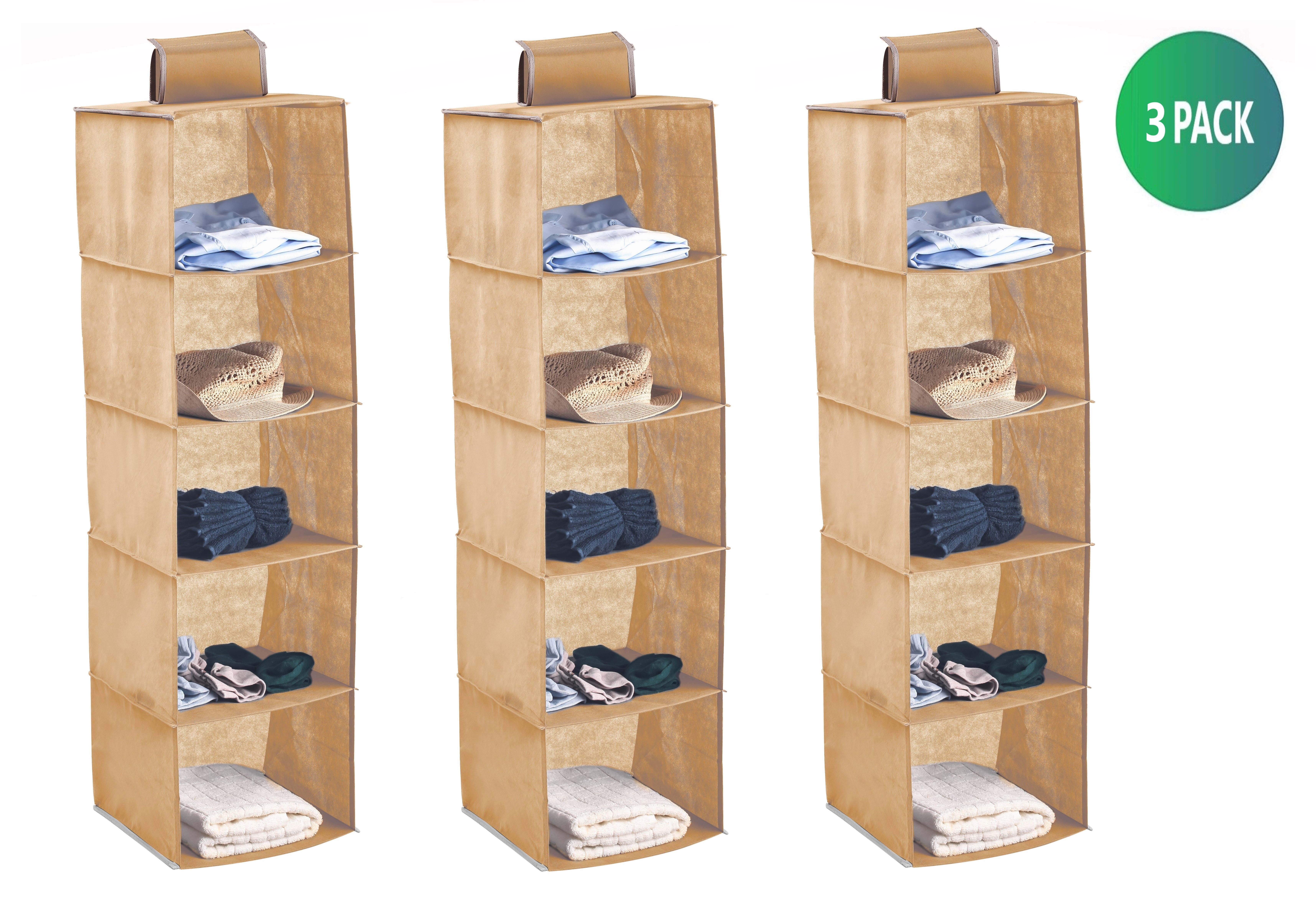 3 Pack 5-Tier Shelf Hanging Closet Organizer and Storage for Clothes (Beige)