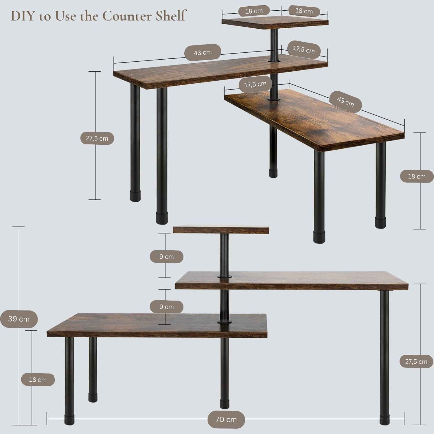 - LIGHTWEIGHT AND SAFETY DESIGN: Our display shelves’ design concept is light and simple, because of its lightweight and compact size, the freestanding saving cabinet can be moved easily. More important, the shelves’ unique round edge ensure you will not injure when carrying or bumping into it. It is perfect for kitchen organisation.