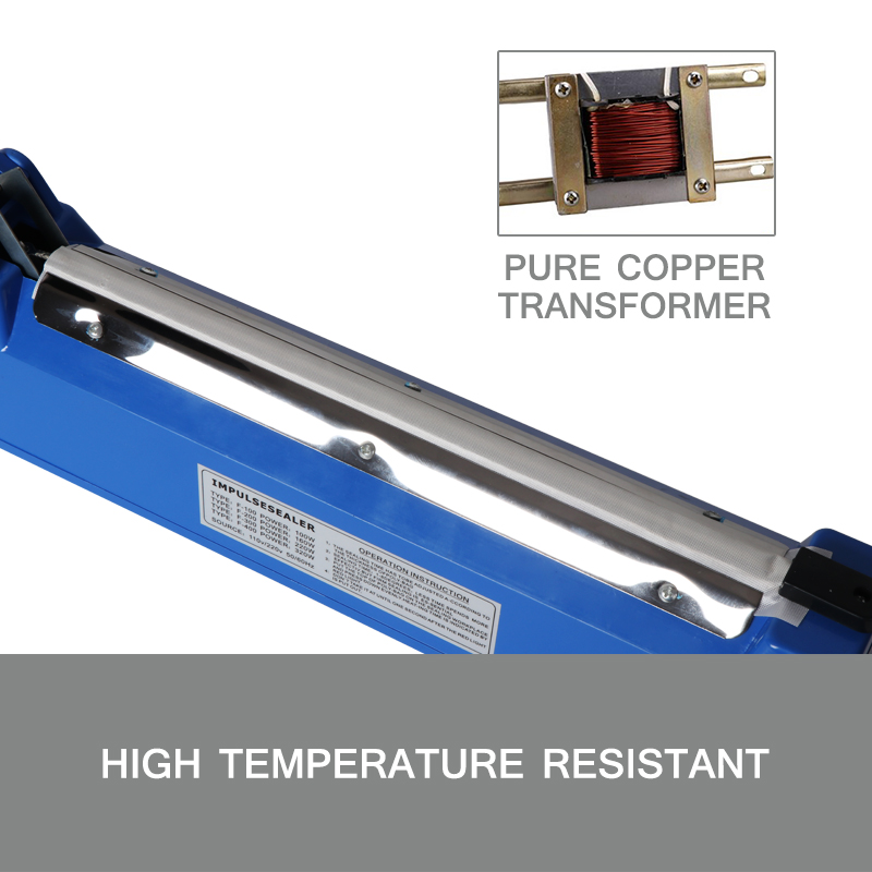 A heating strip and high-temperature cloth are necessary for sealing the machine. The product may be aged after a long-time of use. Please make a periodic inspection and see replace it with the spare heating strip in time if it`s broken.
