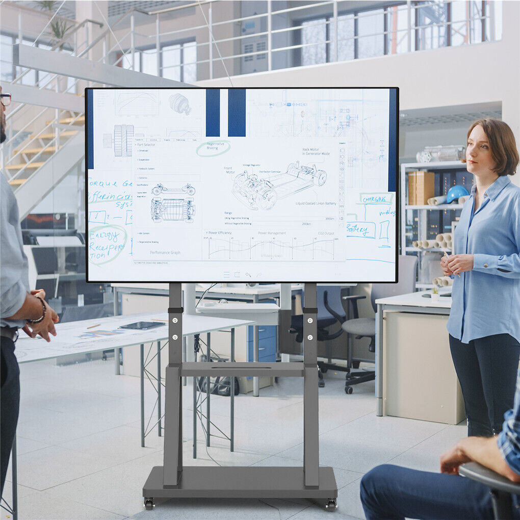 - Adjustable & Convenient: Easily adjust the height of the TV cart between 130cm and 160cm to suit various viewing preferences. The dual shelf design provides ample space for storing computers, DVD players, and other AV equipment, keeping everything you need at your fingertips.