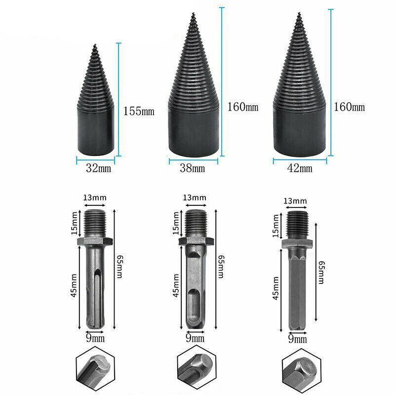 32-42Mm High Speed Twist Firewood Drill Bit Wood Splitting Splitter Cone Driver – 38MM