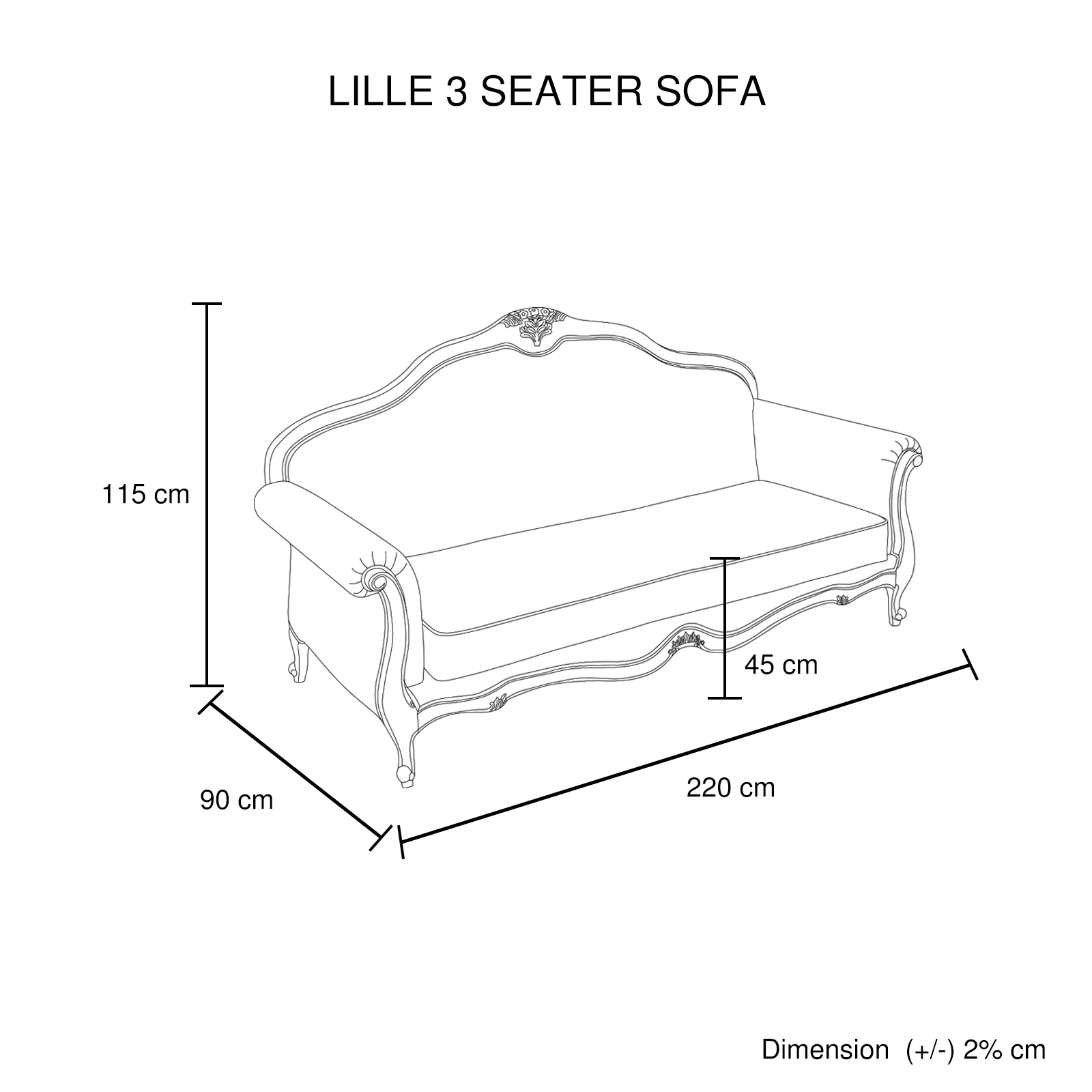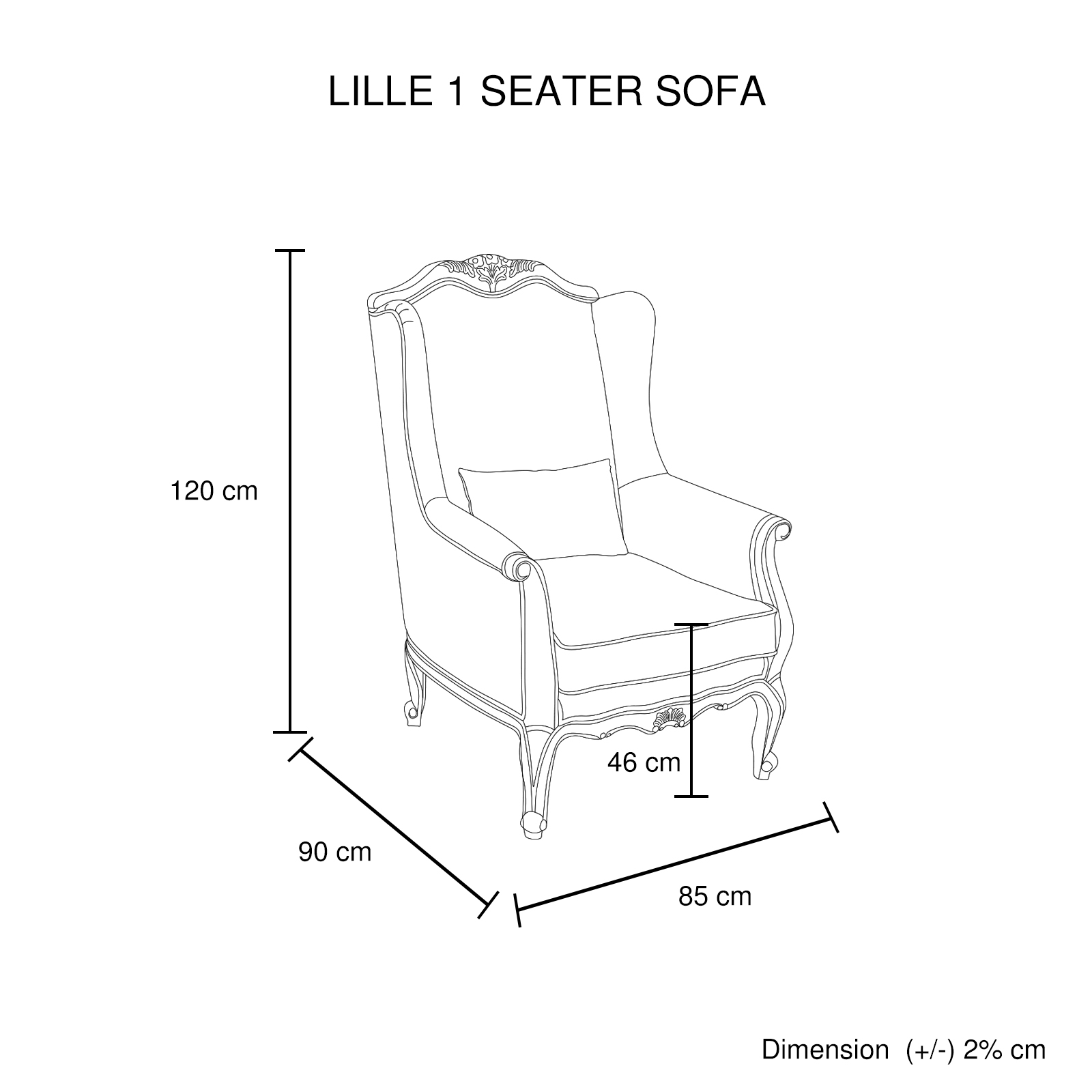 Our Lille sofa proudly boasts royal Chester Ford design and premium upholstered cover. Its medium high backrest has Oak wood frame and there is floral embellishment on top of the backrest. This Lille range has set of two and three seater sofas with one wing chair