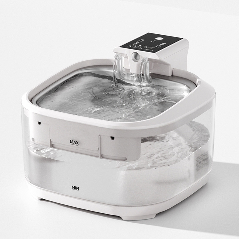4.5L Dual-Flow Smart Pet Water Fountain with Stainless Steel Plate and Faucet – White Design