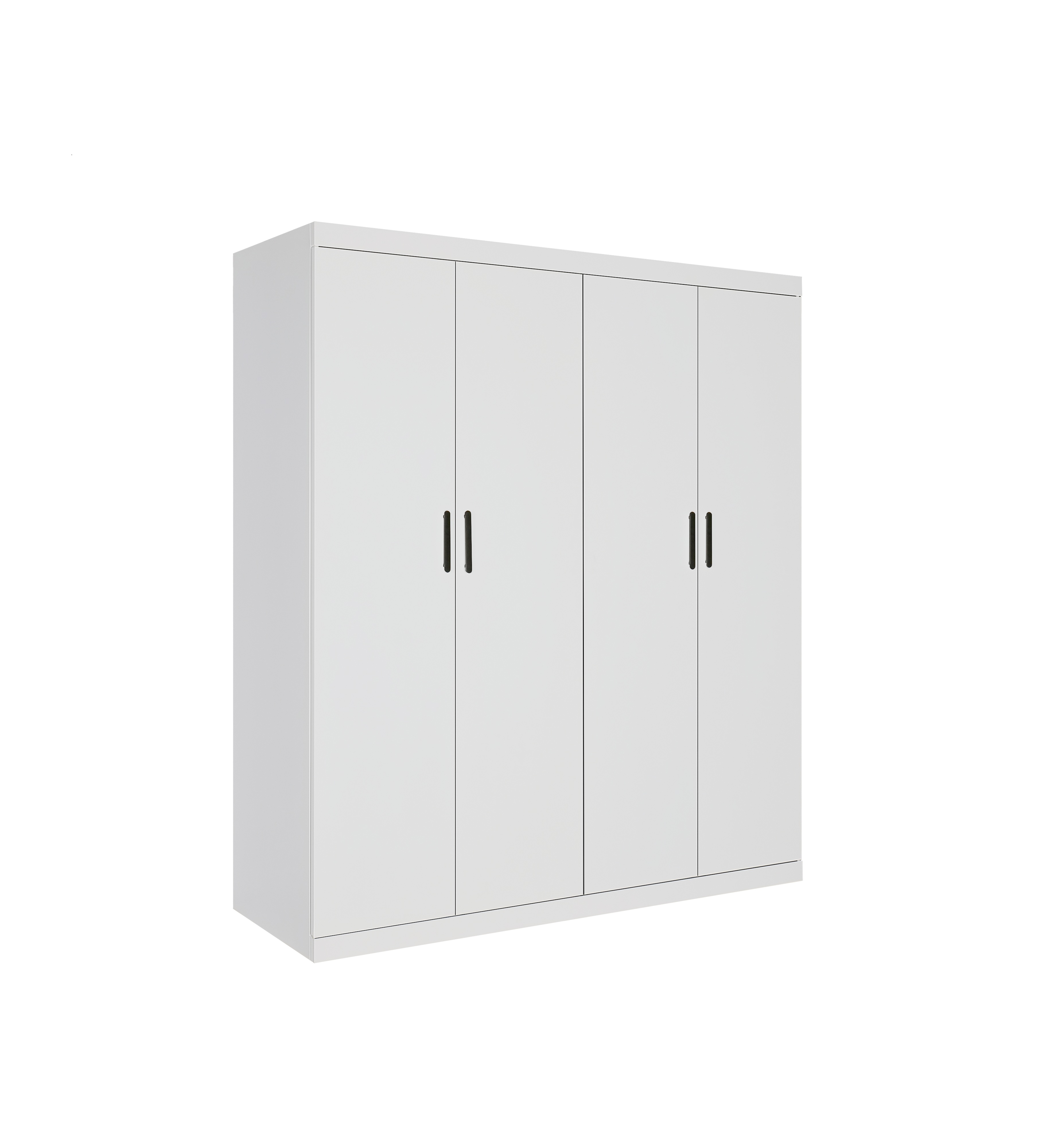 Upgrade your bedroom with this 4 Door White Gloss Wardrobe, a stylish and functional storage solution crafted from durable MDF and particle board. Finished in smooth, protective melamine and accented with black metal handles, this wardrobe brings modern elegance and long-lasting performance to any space.