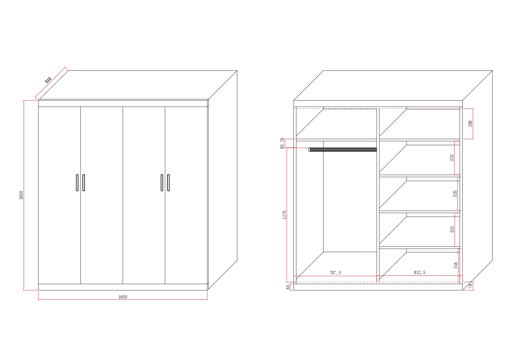 - Over-all dimensions: 160 x 50 x 180cm
