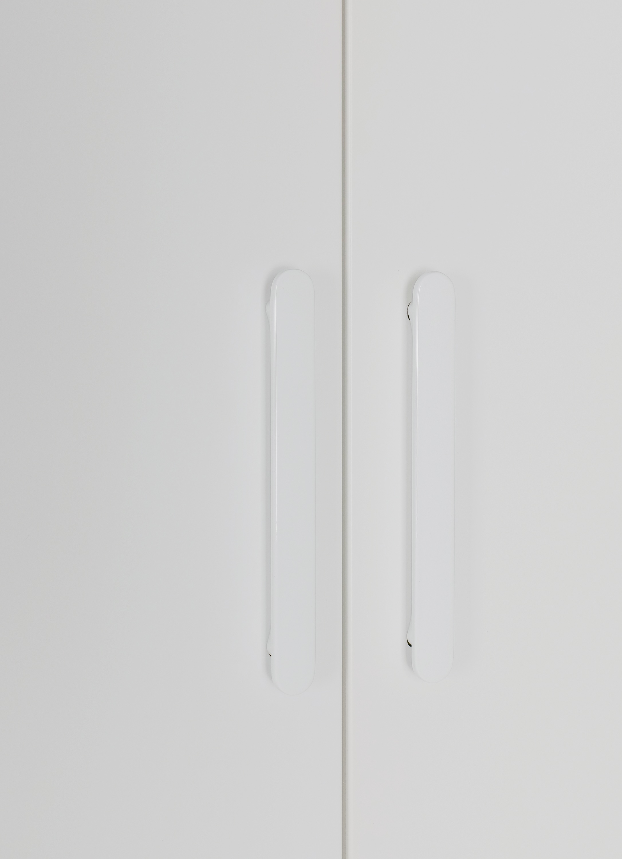 4 Door Wardrobe in White Gloss – Hanging Rail, Shelves & White Handles