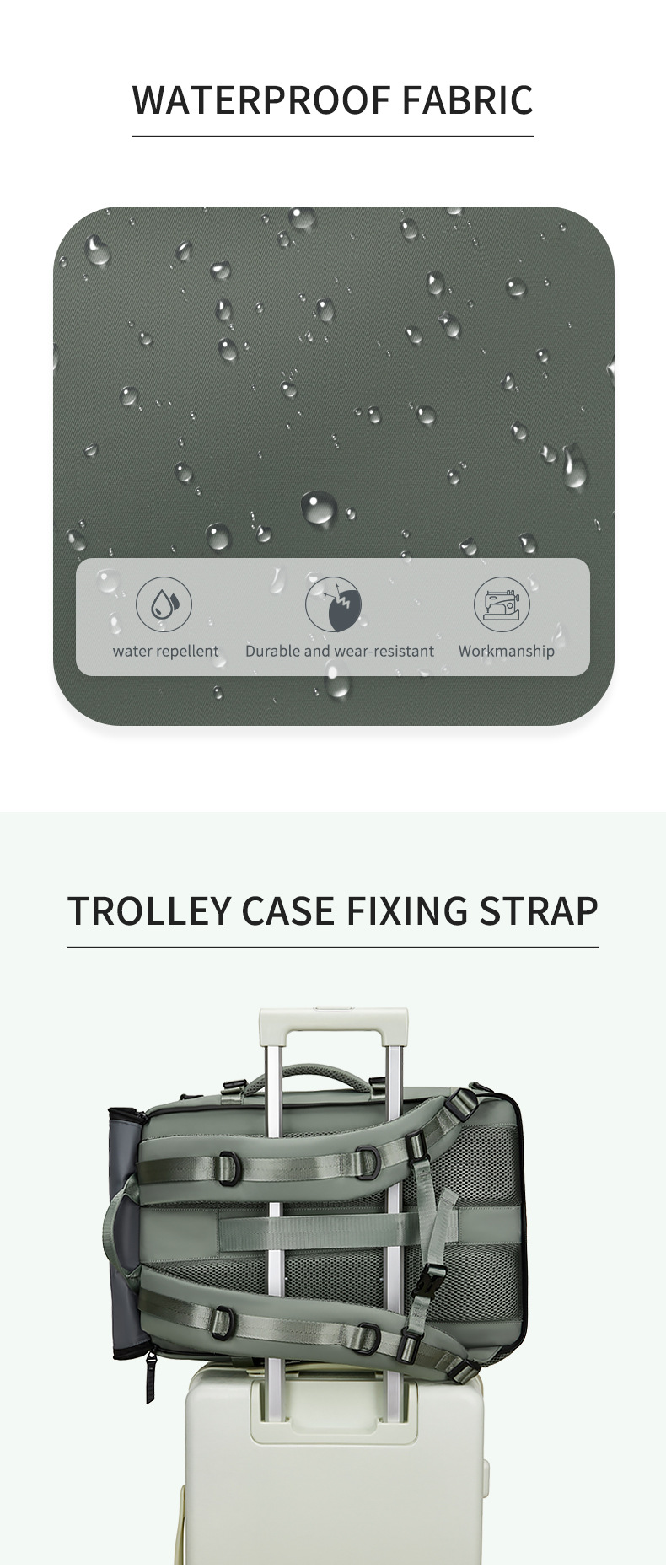 - Travel-Friendly: A luggage strap on the back allows the backpack to be securely attached to a rolling suitcase handle.